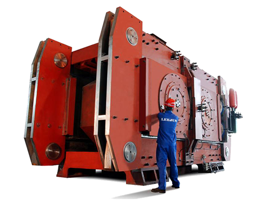 CLF系列輥壓機廣泛應用于水泥建材領域,是基于料床粉碎原理設計的一種粉磨設備,主要由機架、輥系、液壓系統、進料裝置、控制系統、傳動系統等組成。輥系分為活動輥系和固定輥系,兩個輥系做慢速的相對轉動,活動輥系通過液壓缸施壓可在機架導軌上作水平運動,使連續喂入兩輥子間隙的物料被粉碎,壓成料餅下落至機外。